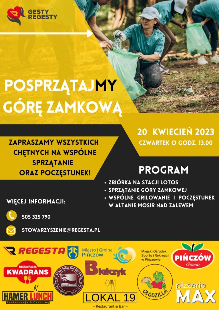 W czwartek 20 kwietnia Stowarzyszenie Gesty Regesty zaprasza wszystkich na sprzątanie Góry Zamkowej w Pińczowie