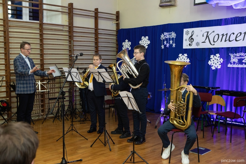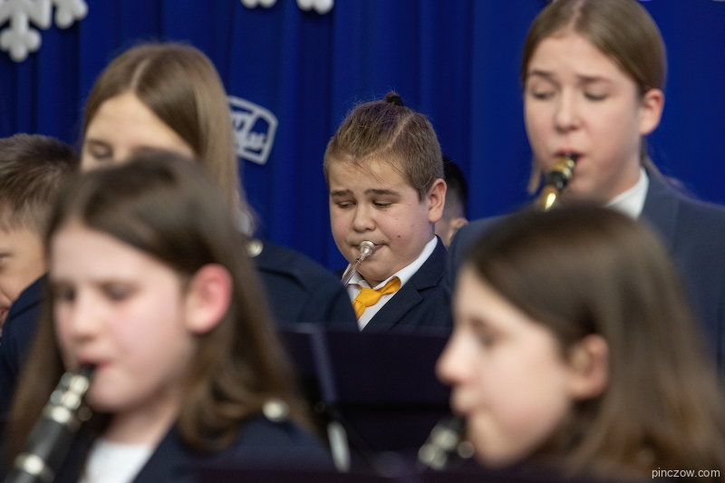 W środę, 20 grudnia w Szkole Muzycznej I stopnia w Pińczowie, w małej sali gimnastycznej odbył się Koncert Świąteczny. Przed licznie przybyłą publicznością wystąpili soliście, zespoły, chór i orkiestra dęta. Niektórym wykonawcom towarzyszyli nauczyciele. Jak można było się spodziewać wśród publiczności byli rodzice młodych artystów, ale również ich znajomi, którzy przyszli posłuchać popisów muzycznych najmłodszych.