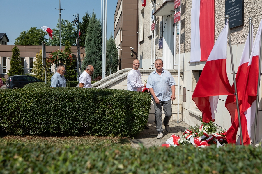 Na Placu Konstytucji 3 Maja odśpiewano hymn państwowy, a delegacje złożyły kwiaty pod tablicą upamiętniającą bohaterów Bitwy Warszawskiej. Wśród składających hołd byli m.in. poseł na Sejm Michał Cieślak, członek Zarządu Województwa Świętokrzyskiego Anita Koniusz, przedstawiciele zarządu powiatu, władze gminy, radni gminy, reprezentanci służb mundurowych, stowarzyszeń oraz organizacji, a także harcerze z Hufca Pińczów. Uroczystości uświetniły również poczty sztandarowe, dodając wydarzeniu podniosłego charakteru.